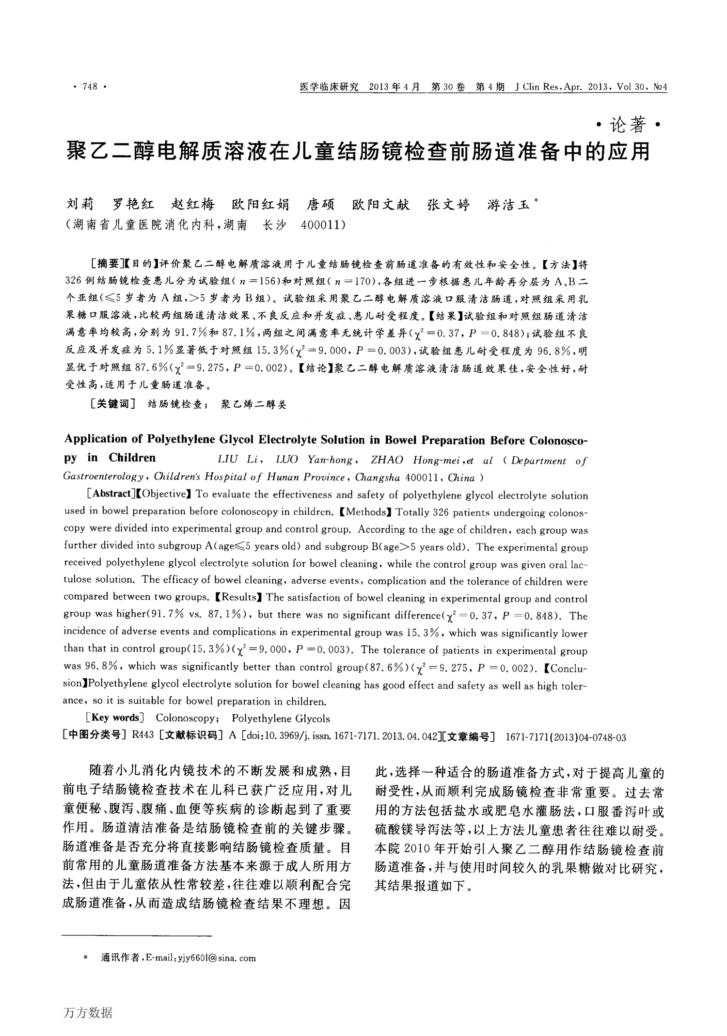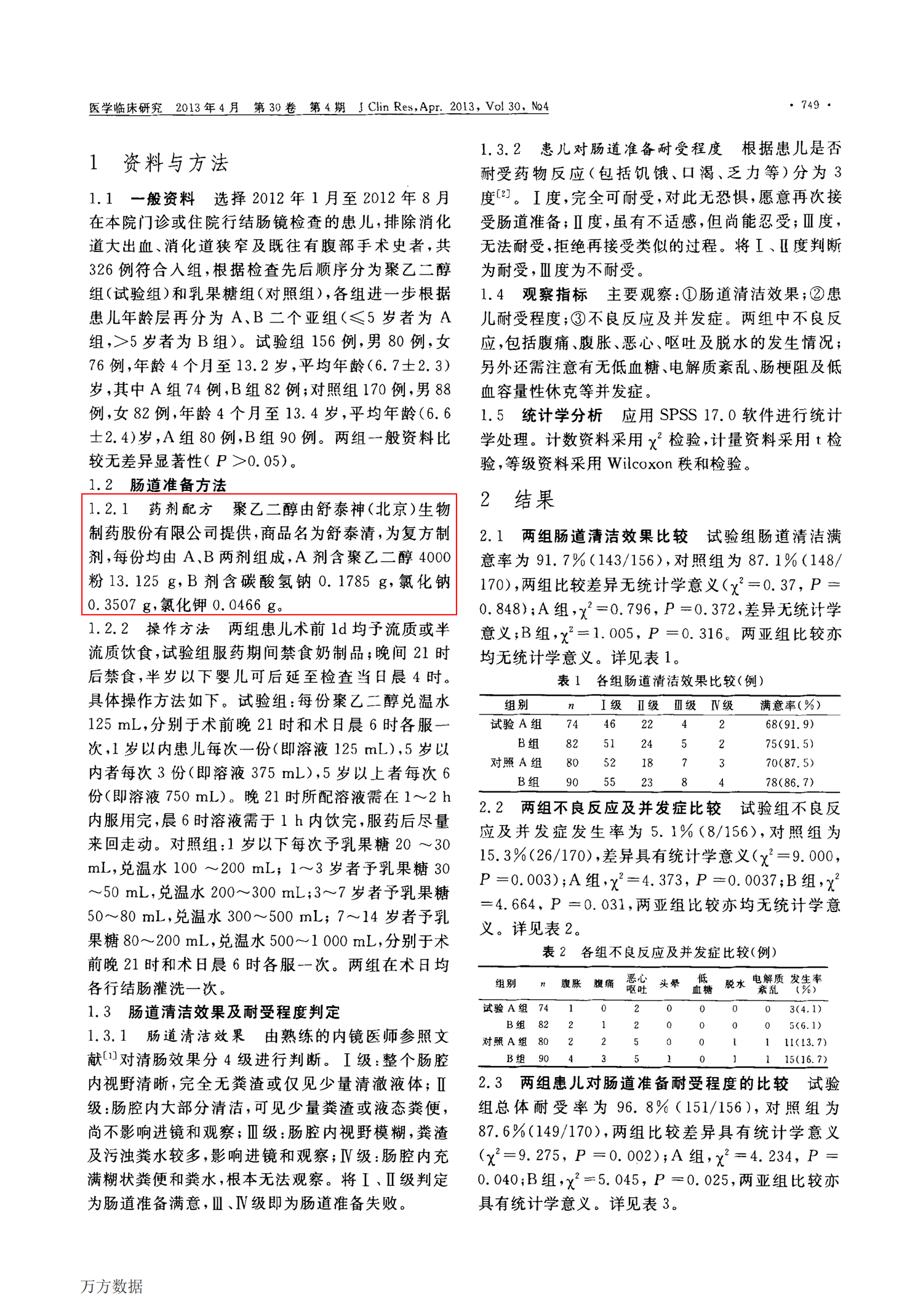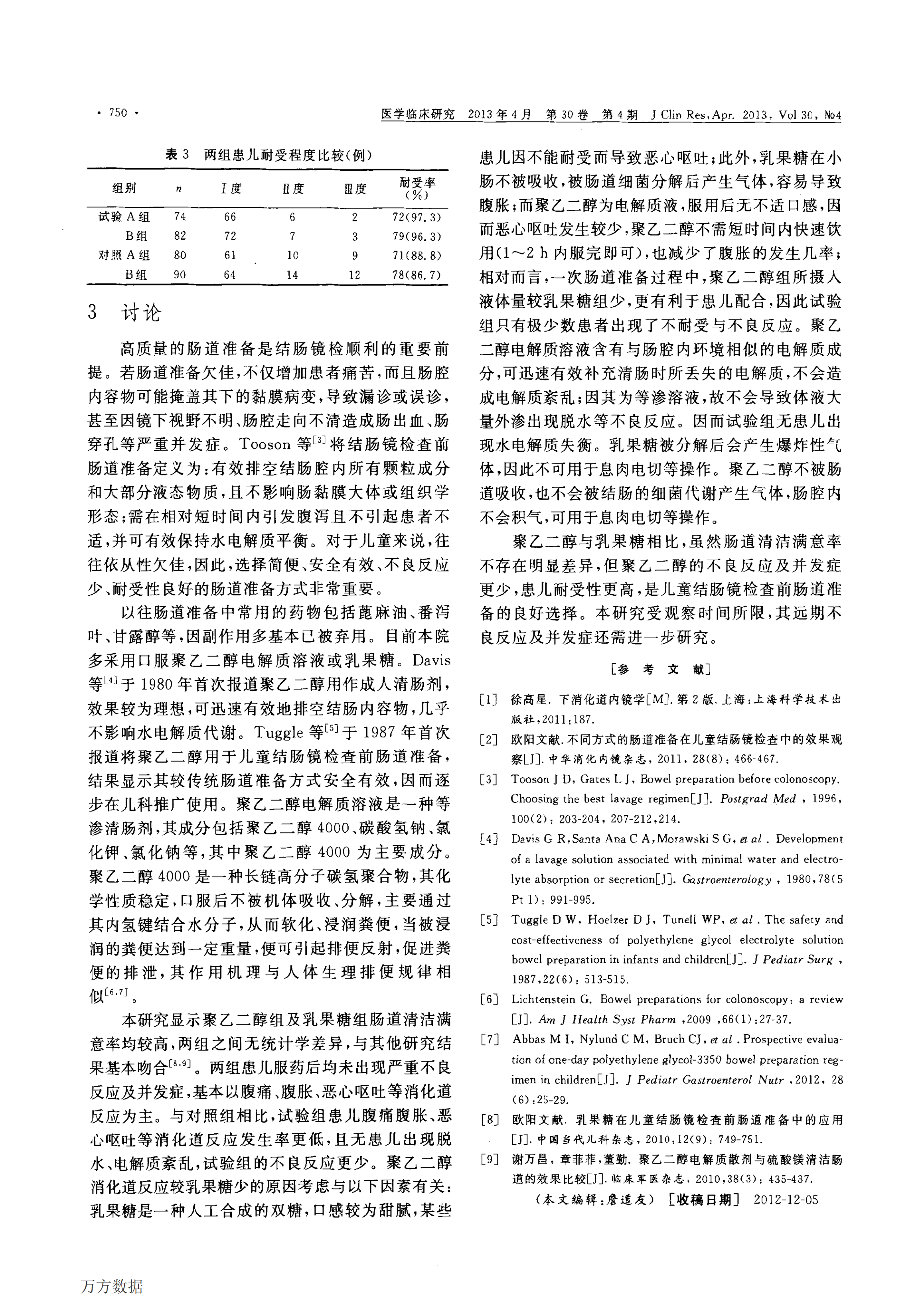 【舒泰清】2013 聚乙二醇電解質(zhì)溶液在兒童結(jié)腸鏡檢查前腸道準備中的應用